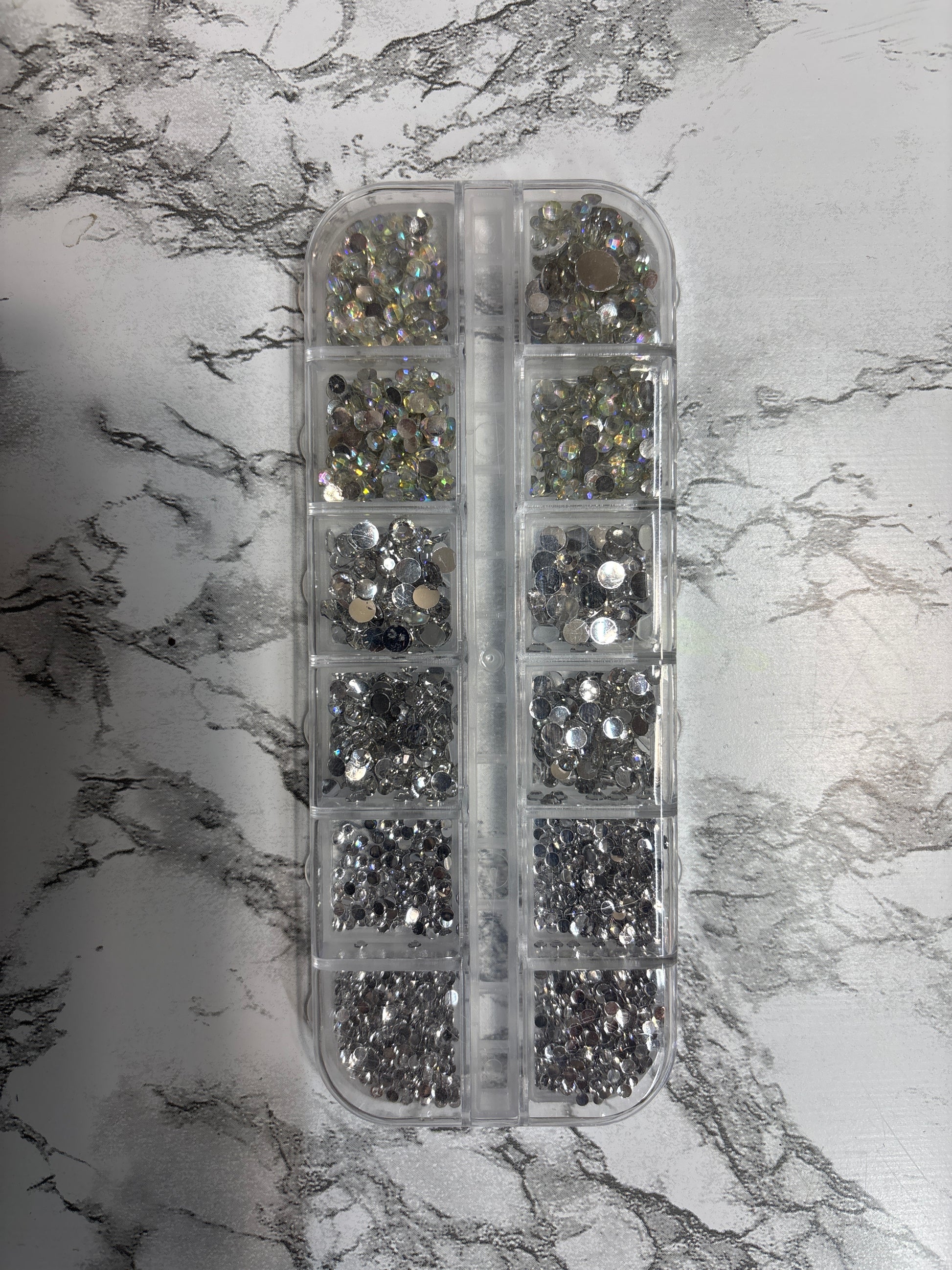 Packs contain different varieties of polymer clay slice/rhinestones.